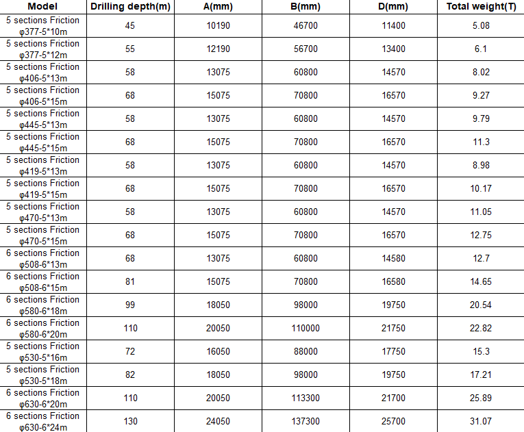 A Friction Kelly bar is another type of Kelly bar, the external key is composed of 3 or 6 wear-resistant strips without lock recesses. This Kelly bar can form pressure force when the bar is rotary, and can produce peripheral force, the rotary passing down the pressure force can then produce the friction force.
