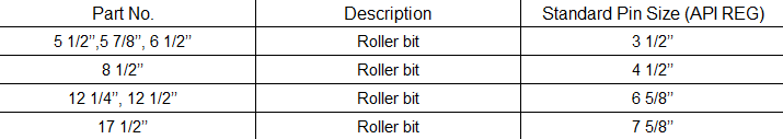 Size: 5 1/2’’, 5 7/8’’, 6 1/2’’, 8 1/2’’, 12 1/4’’, 12 1/2’’, 17 1/2’’.