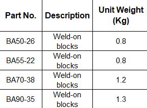 Weld-on Blocks Unit Weight 0.2kg 1.2kg 1.3kg